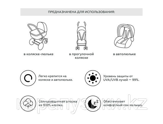 Шторка предназначена для защиты малышей от прямых лучей солнца и яркого света в коляске или автолюльке.